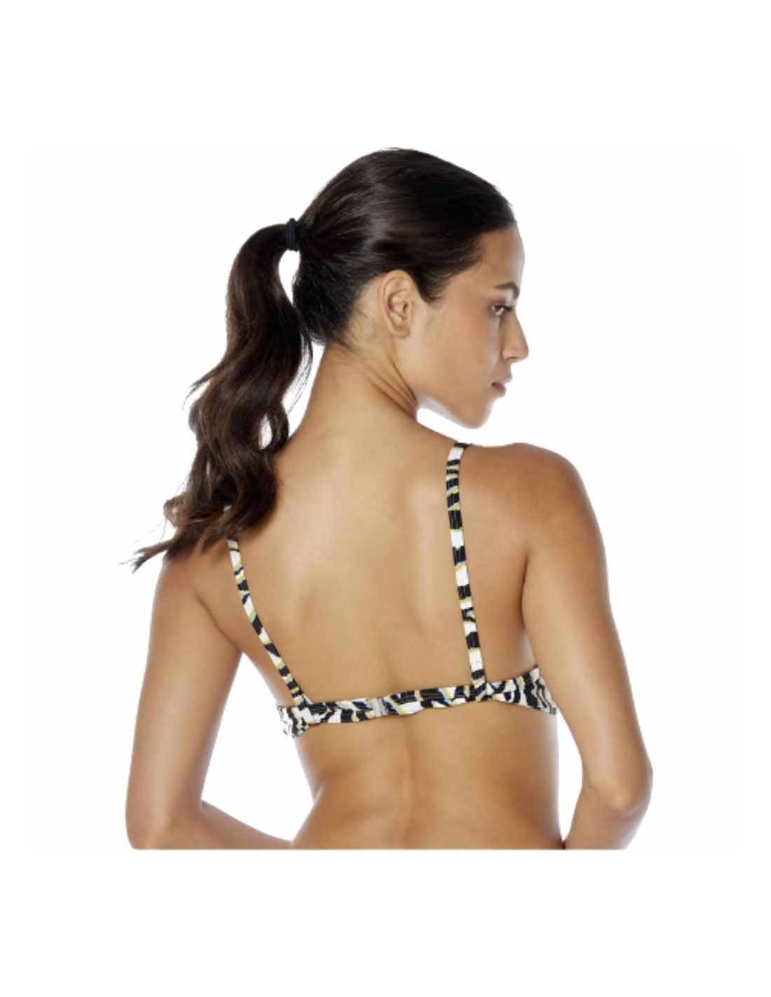 Bikini formado por top con aro y relleno en copa C, tirantes finos regulables en la espalda. La braguita a juego de tamaño midi. Todo en un bonito estampado animal print.
