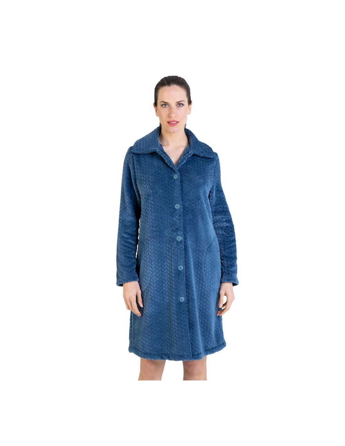Bata de coralina gofrada, abotonada y con bolsillos delanteros . Muy cálida y ligera , ideal para combinar con el pijama P731235 y el camisón L737235