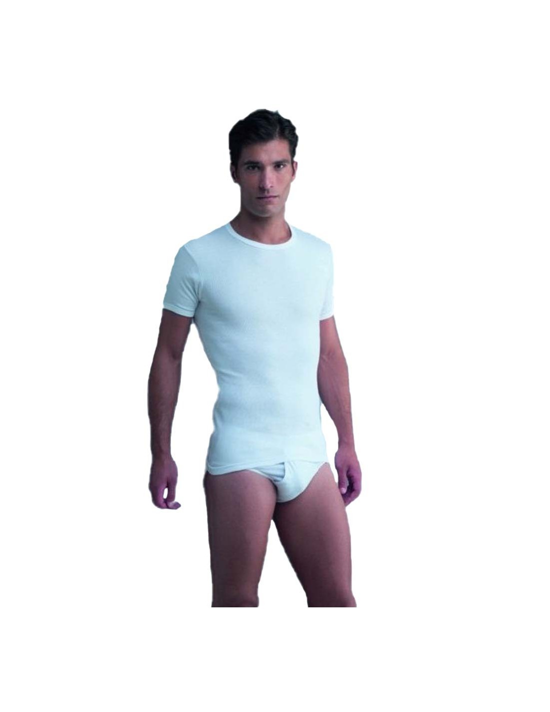 Camiseta de hombre lisa de manga corta con cuello redondo.