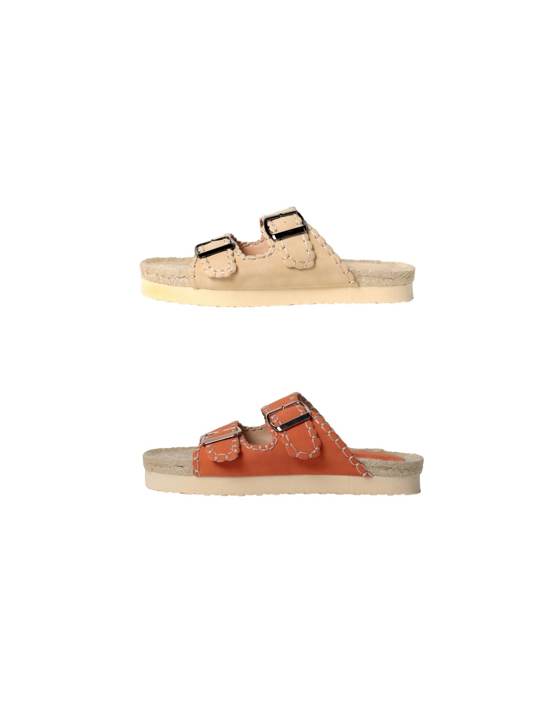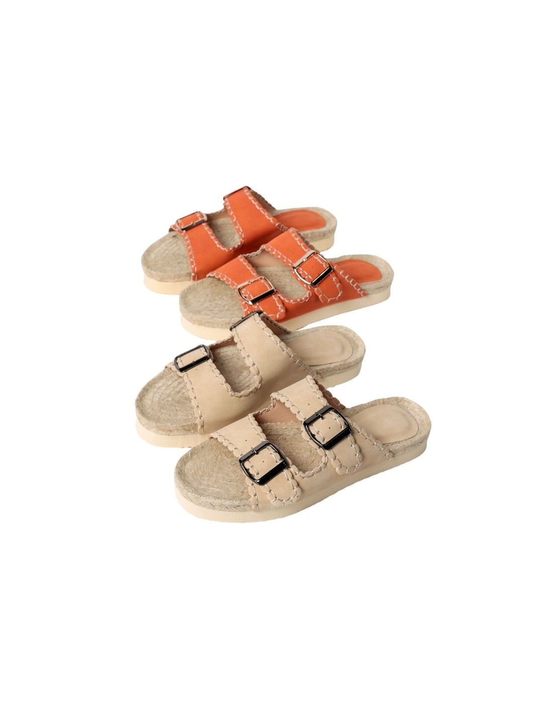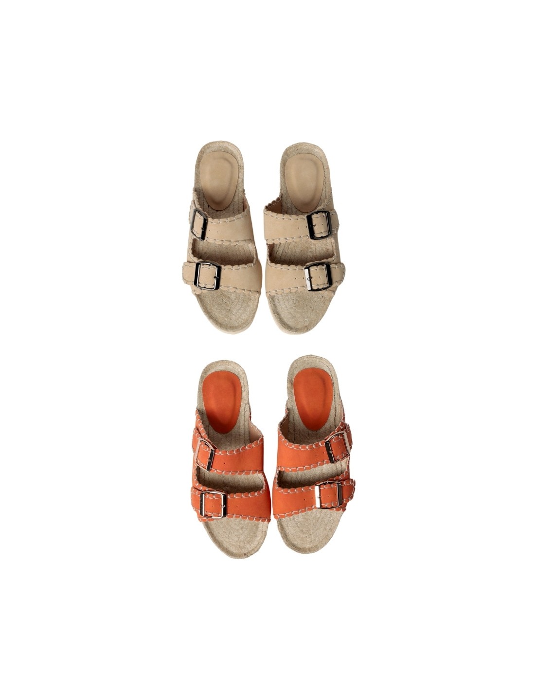 Sandalias con hebilla para mujer ideales para el verano. Disponible en beige y naranja para que lo puedas combinar con tus looks casuales este verano.