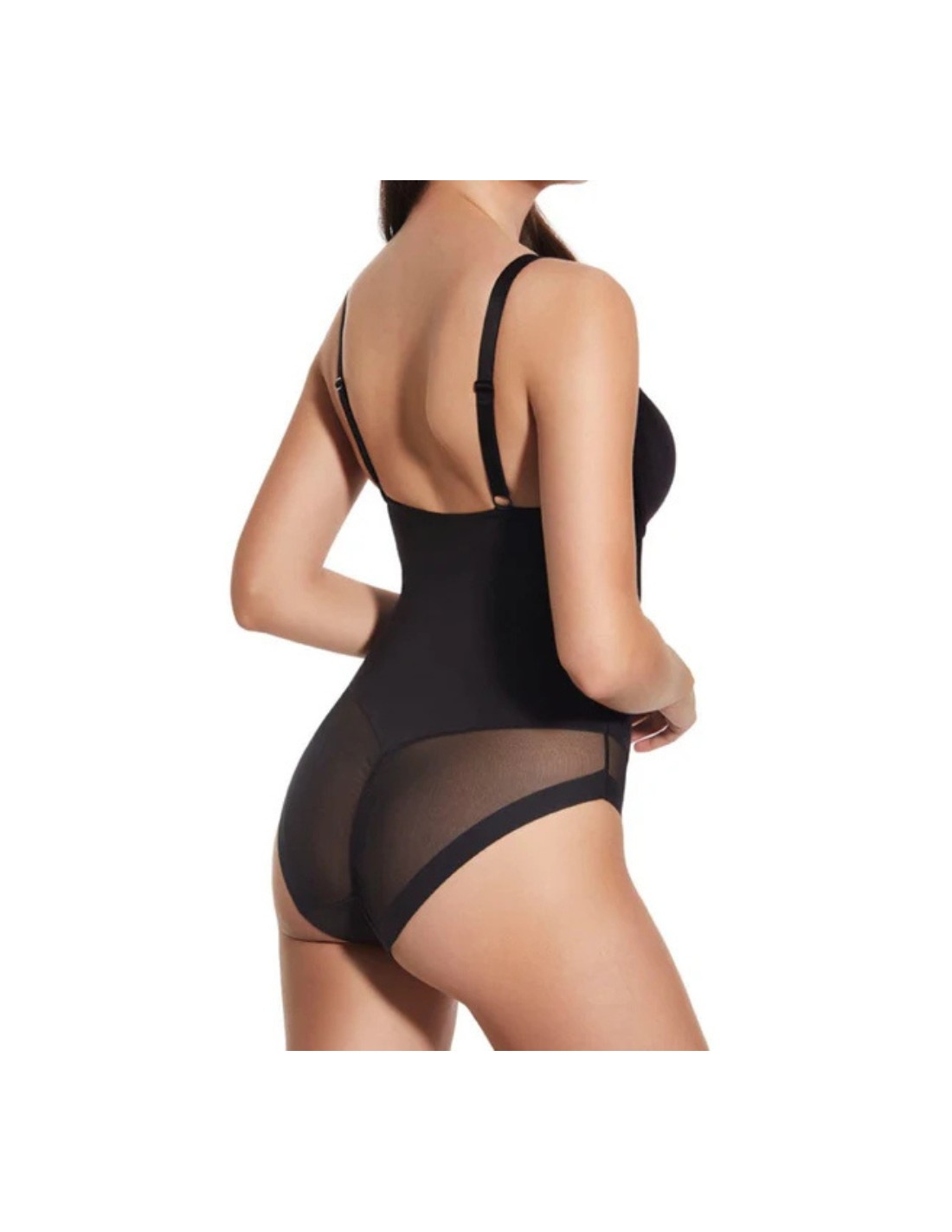 Body Belinda de Selene que ajusta y estiliza la figura. El body lleva aros y relleno en copa C. Va todo rematado en tules cortados a láser para un mejor ajuste. Proporciona una cobertura perfecta moldeando la figura. Lleva tirantes regulables a la espalda y es efecto tanga.