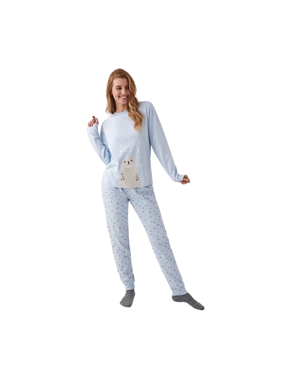 PROMISE pijama mujer invierno algodón foca puño azul N20132