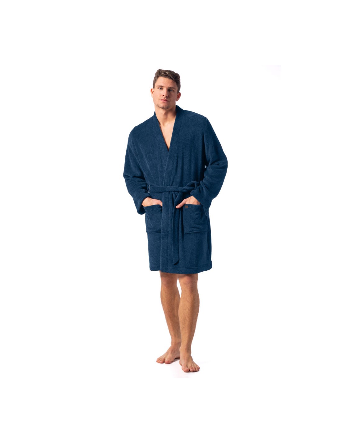 Bata de Soy para hombre cruzada, de tira sin cuello, con bolsillos delanteros de plastón, en un bonito tejido bicolor. Una bata cómoda y calentita a la vez que juvenil. Un clásico renovado.