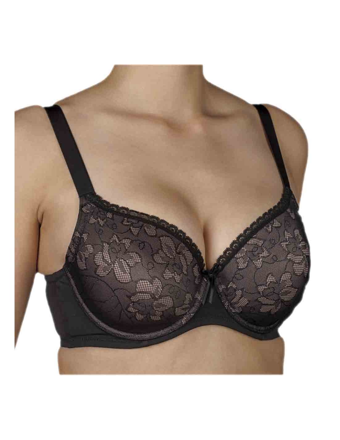 Sujetador copa C con aros y con relleno. Las copas están forradas con un tul con dibujo floral y su espaldilla es de 2 pasadores. Hace juego con la braga Venus-Inma BG
