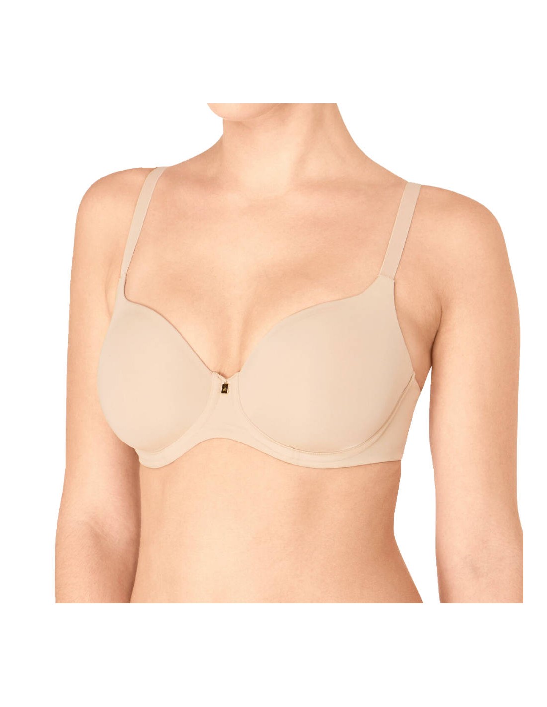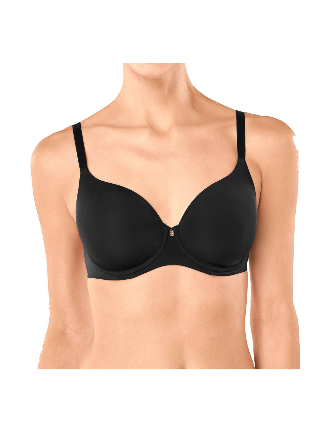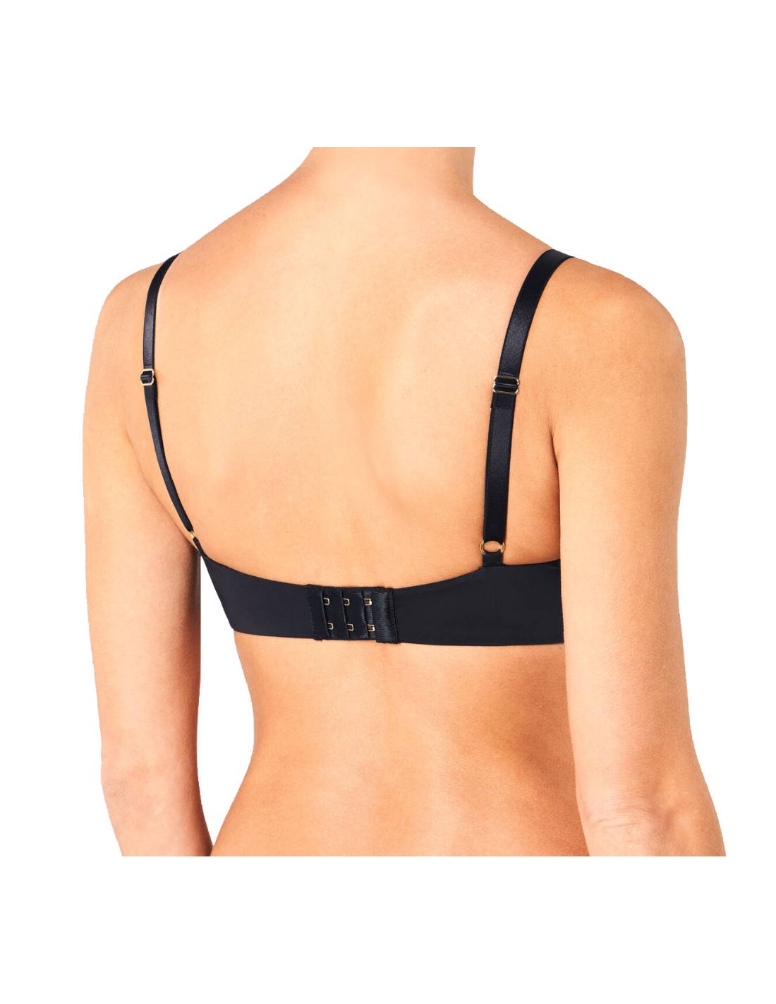 Sujetador de capacidad con aro y relleno en copa C. El tejido es una suave microfibra de gran calidad que ajusta como una segunda piel. Es invisible por sus acabados sin costura. Las capas ligeras y transpirables aportan sujeción sin añadir volumen. Disponible en color negro y piel.