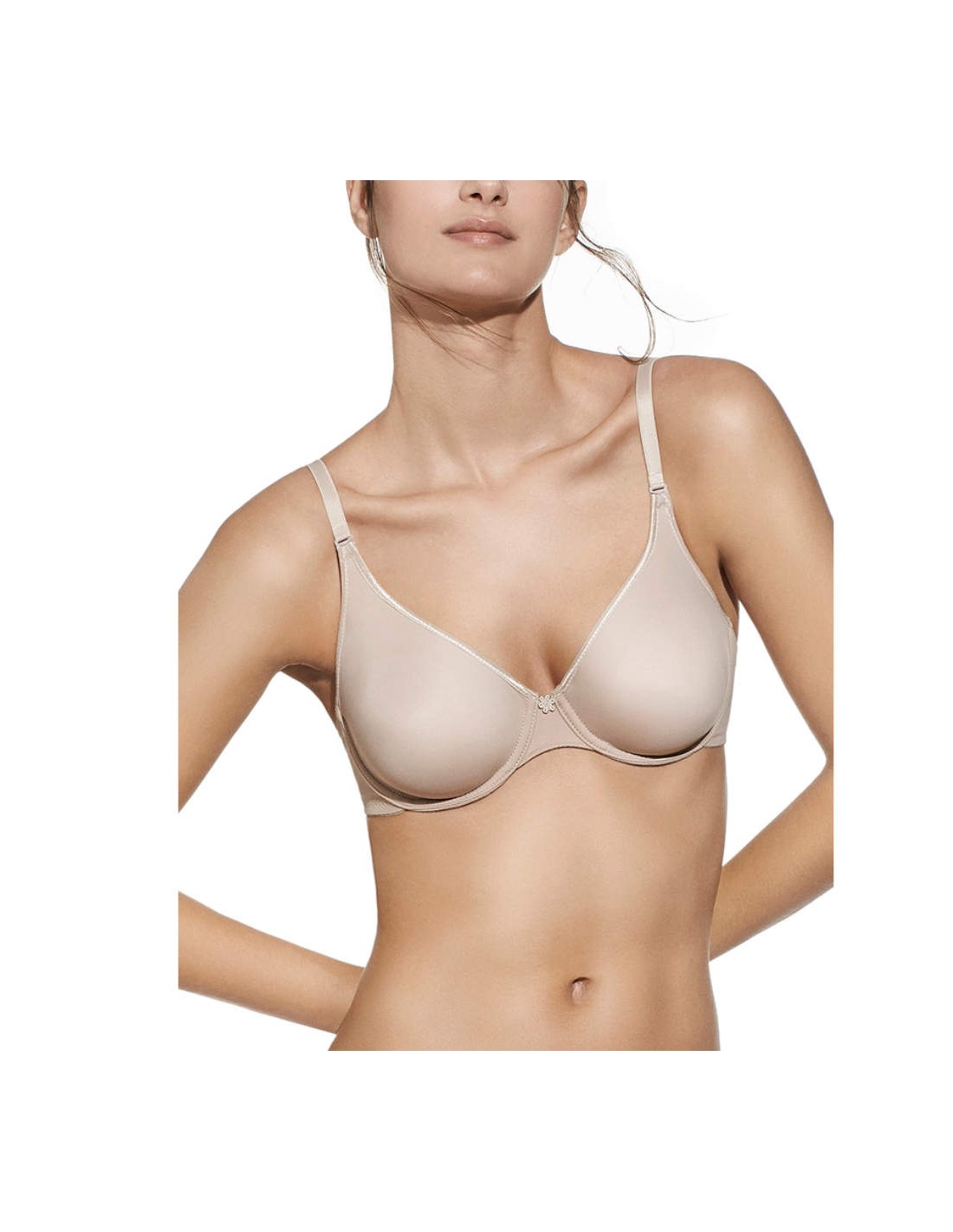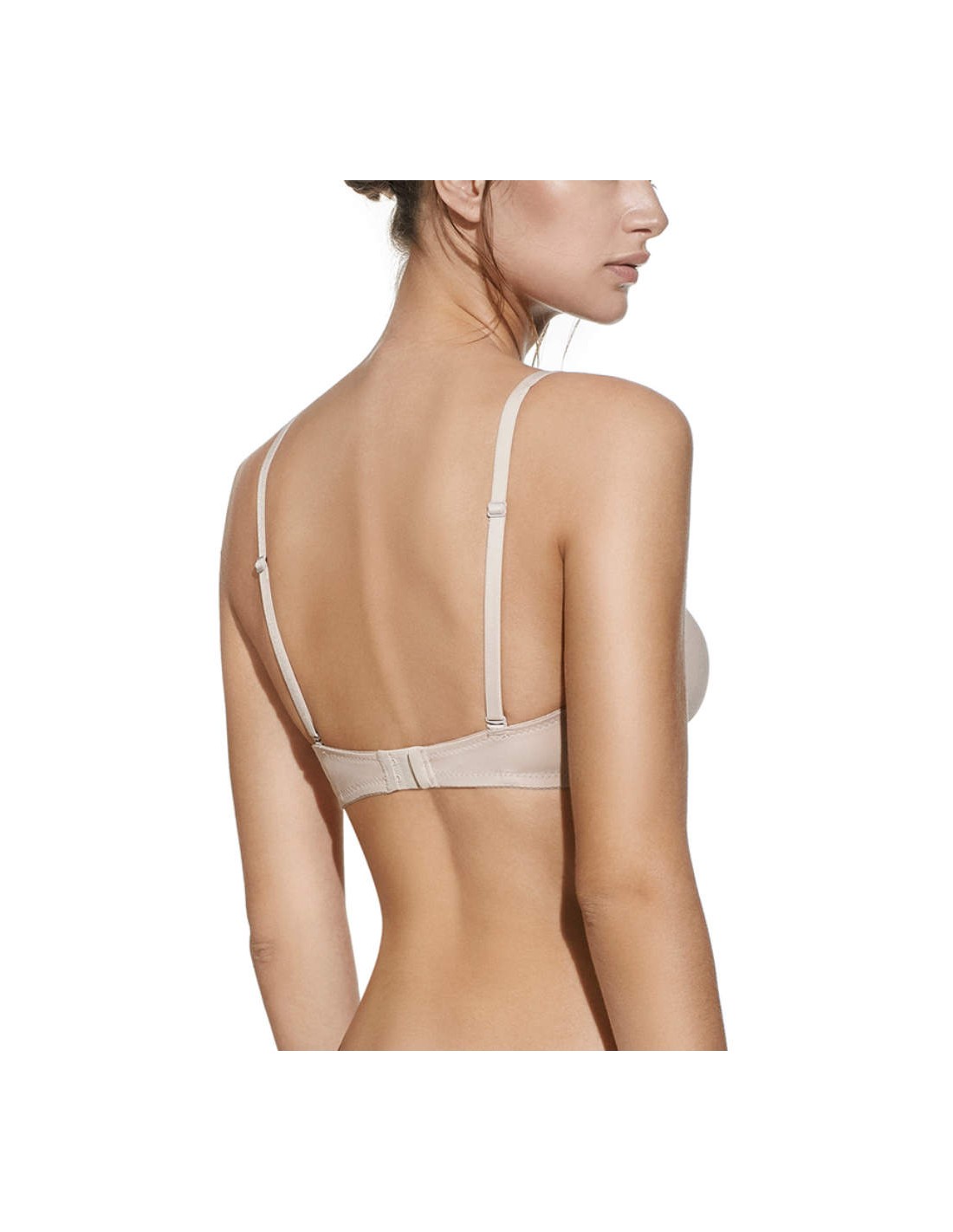 Sujetador multiposición copa C liso sin relleno y con aros. Tiene la posibilidad de cruzar los tirantes a la espalda.