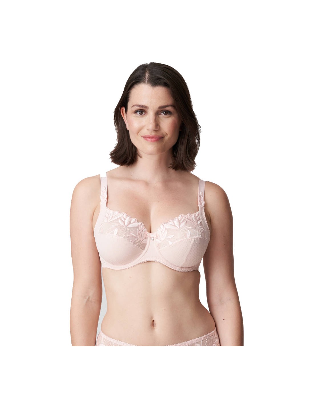 Sujetador Orlando de Primadonna de capacidad, con aro y sin relleno en copa D. Lleva copa de tres piezas que consigue recoger y centrar el pecho de forma natural. Sus tirantes van decorados, sujetan el pecho a la perfección y evitan que se clave en los hombros. Todo va en un bonito color rose, con encaje floral en el puente superior y en jacquard a tono en la parte inferior.